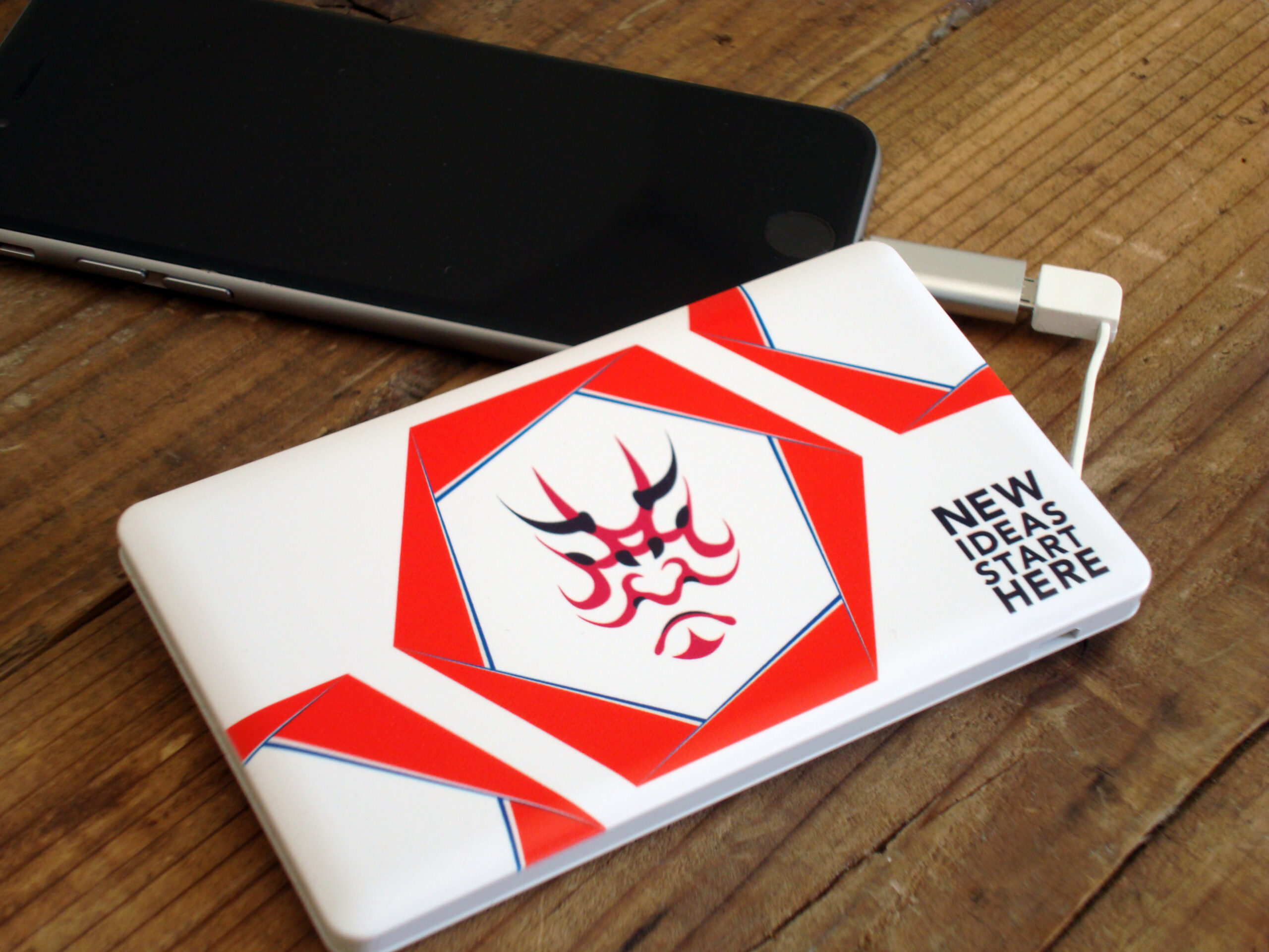 MICE(国際会議・報奨旅行・展示会など)参加者向けノベルティ(ギブアウェイ)として、日本の伝統文化を象徴する歌舞伎の隈取(くまどり)をモチーフにしたオリジナルデザインのモバイルバッテリーを制作。